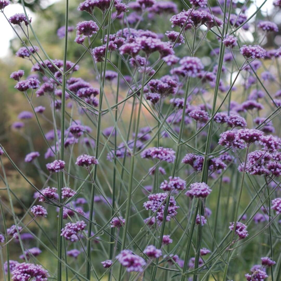 Verbena bonariensis improved is een grote, niet veeleisende en zwervende vaste plant met weinig bebladerde, hoge stengels en waarvan de luchtige paarse bloei sierlijke tussen andere planten kunnen staan. Gedijt op een zonnige plaats, in goed doorlatende grond, zelfs kalkachtige grond, Vermijd zware bodems en natte voeten in de winter. Snoei uw planten na de bloei terug als u geen zaailingen wilt.