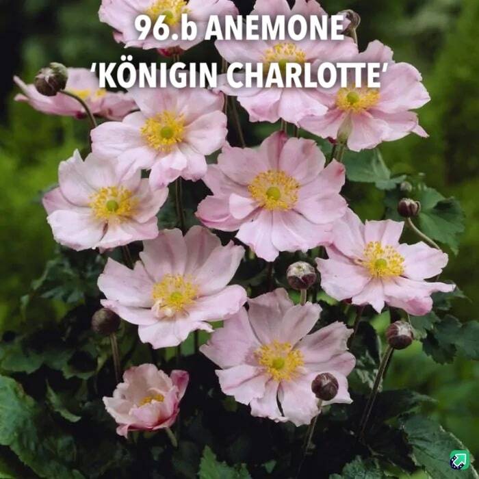 Een herfstanemoon is zeker Anemone hybrida 'Königin Charlotte'. De roze bloemen staan op lange stengels. De bladeren zijn groot en ingesneden van vorm. Deze herfstanemoon geeft, zoals de naam al zegt, aan het einde van de zomer tot in de herfst bloemen. Het is een geschikte tuinplant voor de border, aan de bosrand of in de schaduwtuin, tussen andere vaste planten. Herfstanemoon is geschikt voor de kust en voor stedelijk gebied, verdraagt zeewind en luchtverontreiniging. Anemone hybrida 'Königin Charlotte' staat het liefst in de zon of halfschaduw, in een goed doorlatende bodem en stelt weinig eisen aan de grondsoort. Knip na de bloei van Anemone hybrida 'Kōnigin Charlotte' de uitgebloeide stengels af en verwijder in de lente alle dode bladeren.