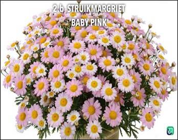 Struikmargrieten (Argyranthemum frutescens) zijn zeer rijk bloeiende struikjes die tot oktober vol door kunnen bloeien met honderden margrietachtige bloemen. Bloemen in roze met een geel hart. Het blad wordt vaak bijna geheel door de bloemen bedekt. Geschikt voor potten en bloemperken. Het wegnemen van uitgebloeide bloemen zorgt voor een verlengde bloei.